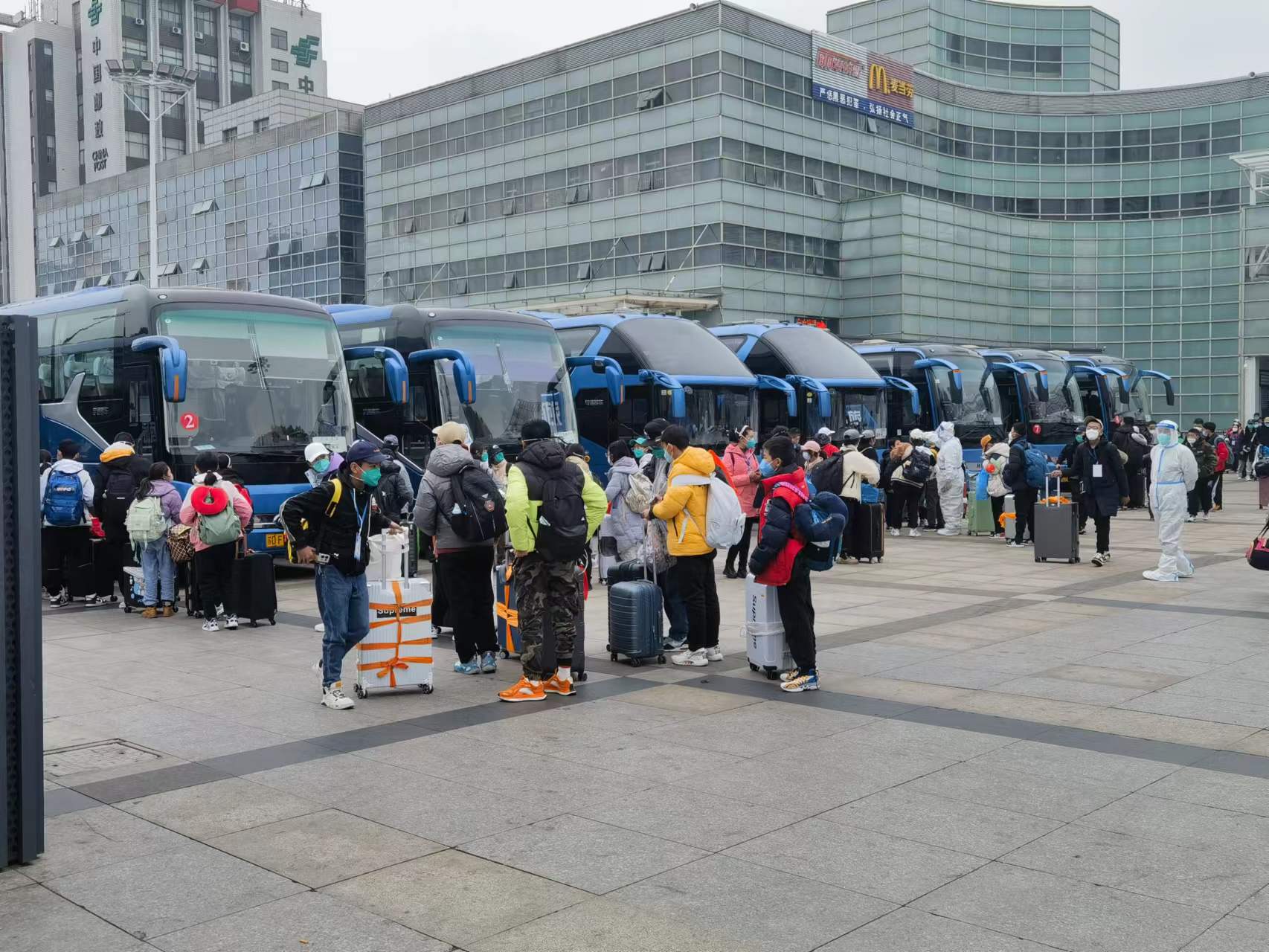 當(dāng)天,19輛轉(zhuǎn)運(yùn)大巴早上8:00準(zhǔn)時(shí)出發(fā),到達(dá)火車站南廣場(chǎng)后,在調(diào)度員的指揮下,整齊停放在引導(dǎo)處,原地等待。10:11,專列進(jìn)站,600多名西藏學(xué)生陸續(xù)出站,由駕駛員引領(lǐng)至對(duì)應(yīng)的大巴車,并在駕駛員的幫助下,安放行李、更換口罩、登車入座。僅用30分鐘,所有學(xué)生全部安排妥當(dāng),轉(zhuǎn)運(yùn)大巴逐一開(kāi)往對(duì)應(yīng)酒店。一路上安全平穩(wěn),到達(dá)酒店后,駕駛員指揮學(xué)生有序下車,拿好行李,跟酒店做好交接,辦理移交手續(xù)。隨后,車輛、駕駛員立即做消殺,下午2點(diǎn)左右,大巴全部返回,轉(zhuǎn)運(yùn)任務(wù)圓滿完成。